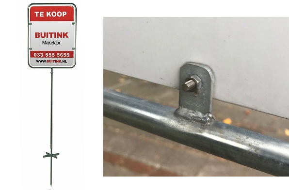 Eenvoudig aluminium makelaarsbord / immobord, elektrolytisch verzink, bestaande uit 3 delen - bordhouder, middenbuis en grondpen - biedt een veelzijdige en duurzame manier om een boodschap te presenteren. Eenvoudig in elkaar te schuiven en vast te schroeven, is dit bord perfect voor wisselende advertenties en informatie. Met een variabele lengte van 140 tot 200 cm kun je de grootte van het bord aanpassen aan jouw specifieke behoeften. Het ruime reclamevlak van 48x65 cm kan staand worden gebruikt om een boodschap opvallend en duidelijk weer te geven. De buitenmaat van de geprinte 3 mm dikke dibond plaat is 48x65 cm en een reclamevlak van 43x60 cm. Print is enkelzijdig. Bestand aanleveren conform bijgaande template (zie PDF). Voor dubbelzijdige print of print voorzien van een beschermende coating is de prijs op aanvraag.| Aantal | Prijs per stuk |