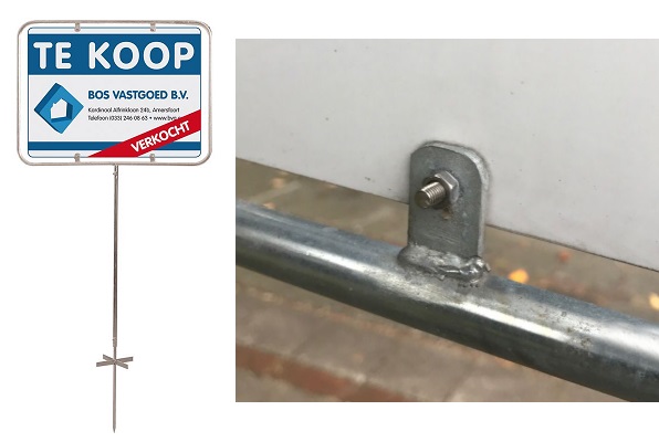 Eenvoudig aluminium makelaarsbord / immobord, elektrolytisch verzink, bestaande uit 3 delen - bordhouder, middenbuis en grondpen - biedt een veelzijdige en duurzame manier om een boodschap te presenteren. Eenvoudig in elkaar te schuiven en vast te schroeven, is dit bord perfect voor wisselende advertenties en informatie. Met een variabele lengte van 140 tot 200 cm kun je de grootte van het bord aanpassen aan jouw specifieke behoeften. Het ruime reclamevlak van 65 x 48 cm kan liggend worden gebruikt om een boodschap opvallend en duidelijk weer te geven. De buitenmaat van de geprinte 3 mm dikke dibond plaat is 65 x 48 cm en een reclamevlak van 60x43 cm. Print is enkelzijdig. Bestand aanleveren conform bijgaande template (zie PDF). Voor dubbelzijdige print of print voorzien van een beschermende coating is de prijs op aanvraag.| Aantal | Prijs per stuk |