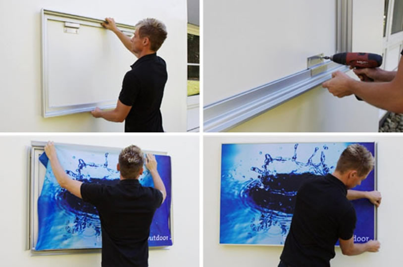 Deze onverlichte outdoor textielframes zijn uw oplossing voor een elegante presentatie van full colour textielprints die voorzien zijn van een silicone strip die men in het profiel schuift. Door het aanwezig klapprofiel dat men op het doek klapt is deze constructie geschikt voor buitentoepassingen. De minimale afmeting is 0,8x0,8 m de maximale afmeting is aan u. Het aluminium frame heeft een diepte van 70 mm. Het klapprofiel aan de voorkant heeft een breedte van 10 mm. Prijzen van frame met f.c. pees-spandoek dienen opgevraagd te worden. Voor meer info over dit product kunt u ook het filmpje bekijken.Wilt u een prijs aanvragen?